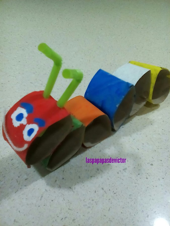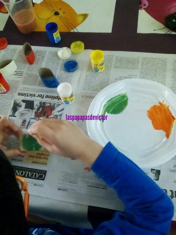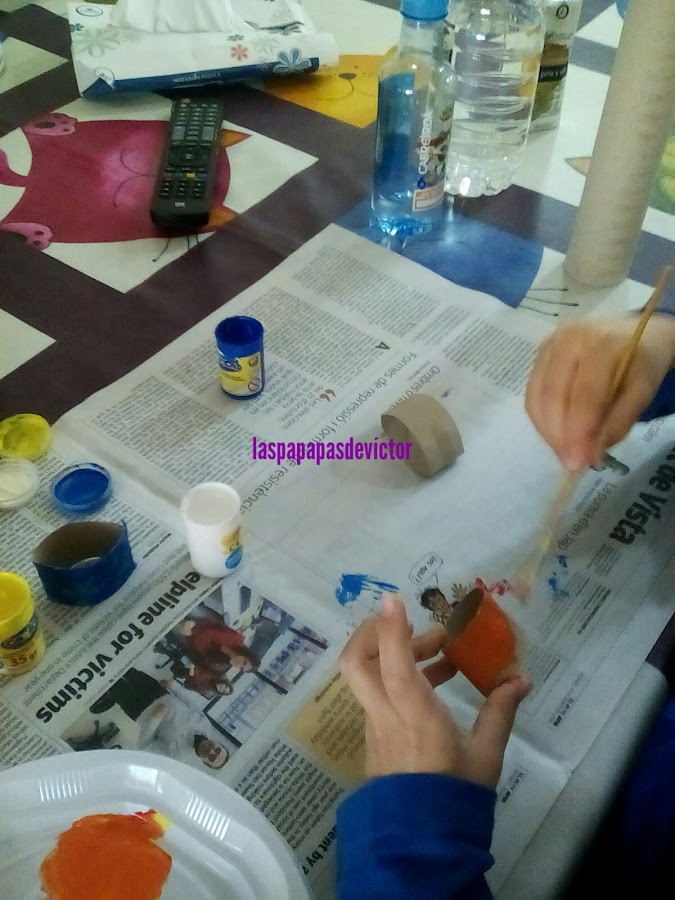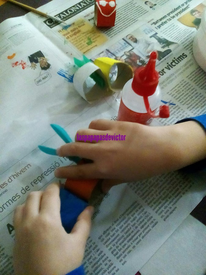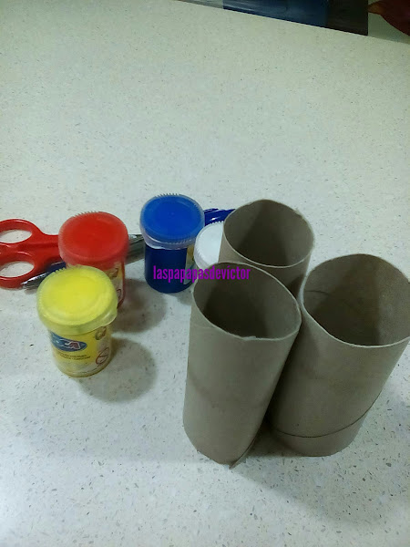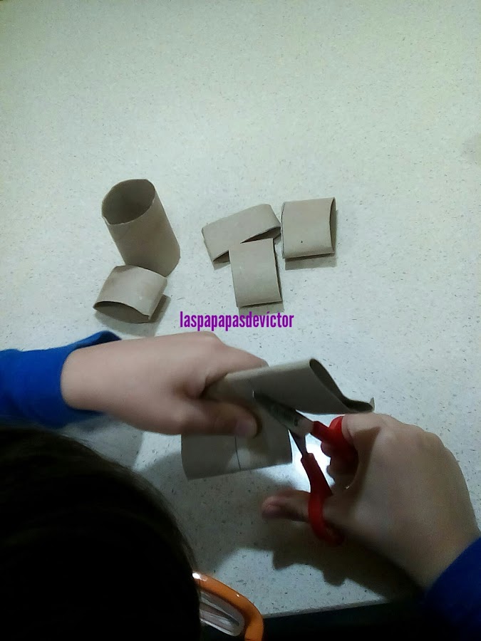 Que un mayor o si es más grande... que parta cada rollo de papel de wc en três trozos con las tijeras