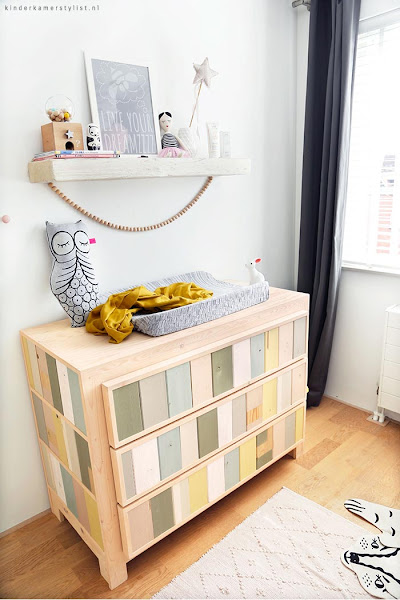 Otro de los elementos que llaman mucho la atención de este cuartito ¿Habéis visto la de pomos que tienen? en forma de bola, botones y lazos y todos pintados en los colores base, amarillo, azul grisaceo y rosa #MUYFAN