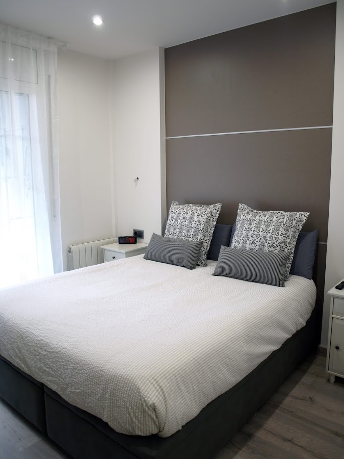 La zona de noche se mantiene aproximadamente en la misma situación, modificando algunas medidas para integrar una pared decorativa a modo de cabezal.