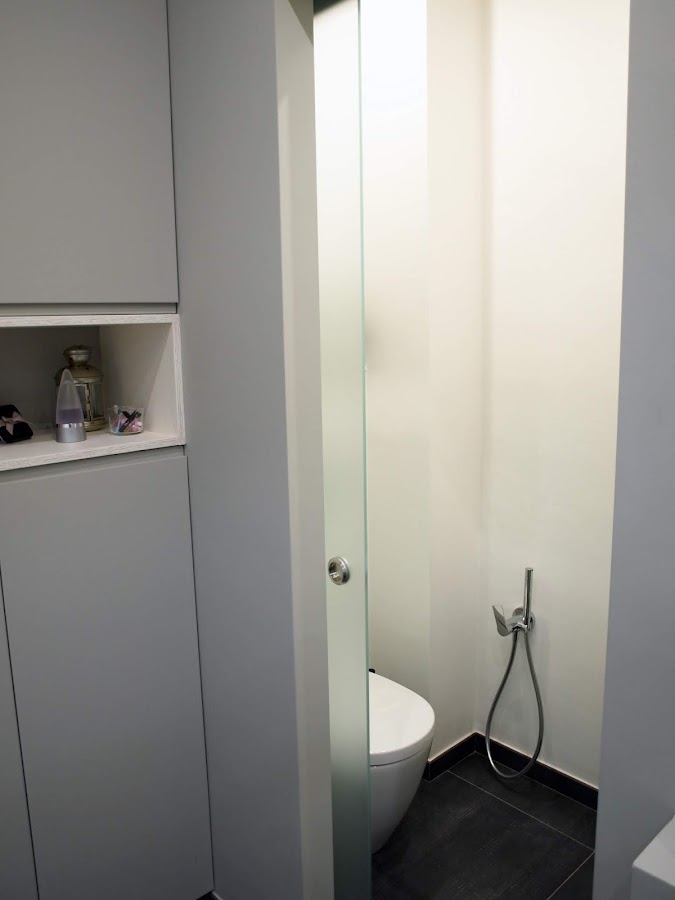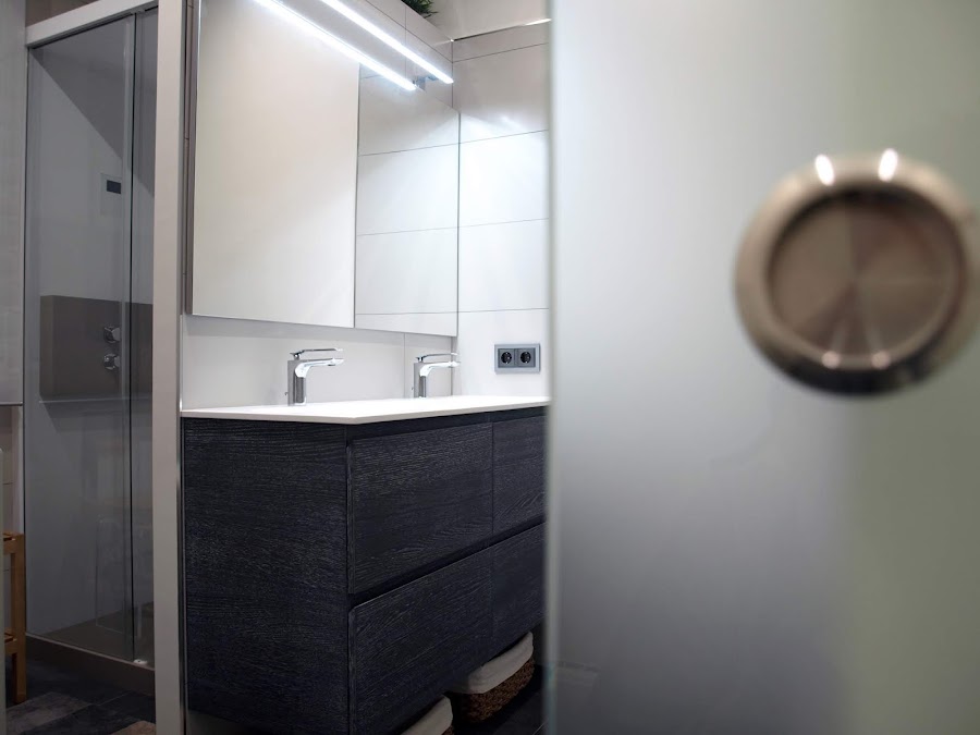 Decidimos realizar un clóset con tres ambientes, diferenciando zona de noche, vestidor y baño con todo el equipamiento posible, para hacer de él una zona de relax de altas prestaciones.