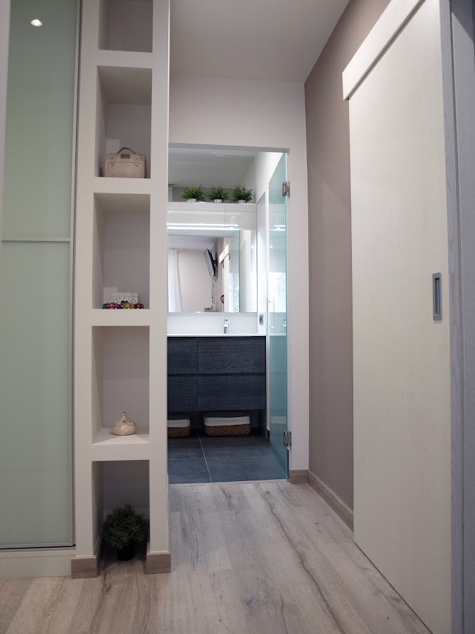 En cambio, la zona de baño se desplaza a la habitación adyacente, y el lugar que ocupaba el baño se destinará ahora para el vestidor.