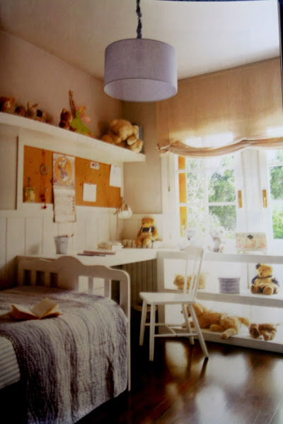 En la siguiente habitación las flores visten el dormitorio decorado con una manifiesta voluntad clásica.Una atmósfera floral lo envuelve todo desde el papel pintado a los estores, el tapizado de la silla y la ropa de cama. Un mueble alargado alberga cajones de mimbre en sus estantes e incorpora un banco bajo la ventana, que se convierte en un rincon ideal para la lectura.Las dos camas de hierro, el ligero escritorio de tijera y la tonalidad de los complementos mantiene la linea de serena comodidad de toda la habitación.