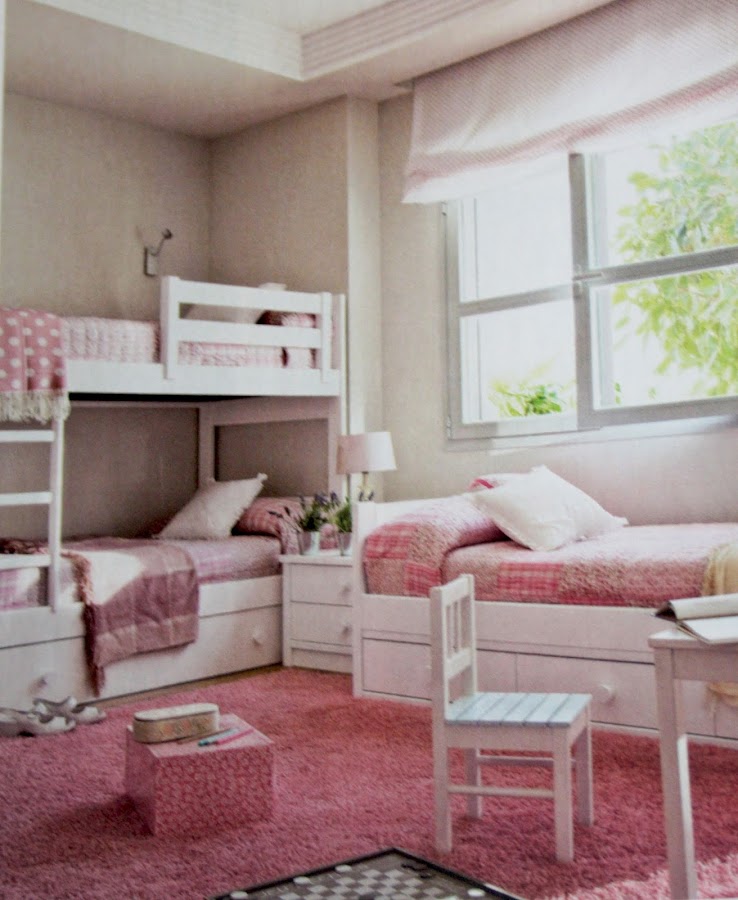 Las habitación está decoradas en una gama de tonos y motivos que juegan con el tradicional color de niñas, dándole un aire distendido y actual.