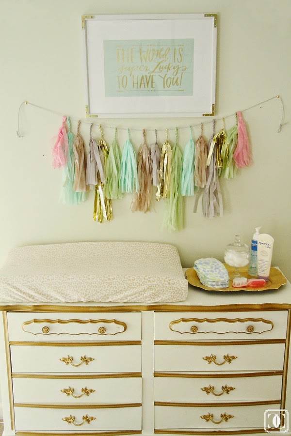 Y que me decís de la guirnalda que protagoniza el cambiador muy original. Y abajo un maniquí sirve para expositor de pasadores de la peque, porque llegan a tener tantísimos!!