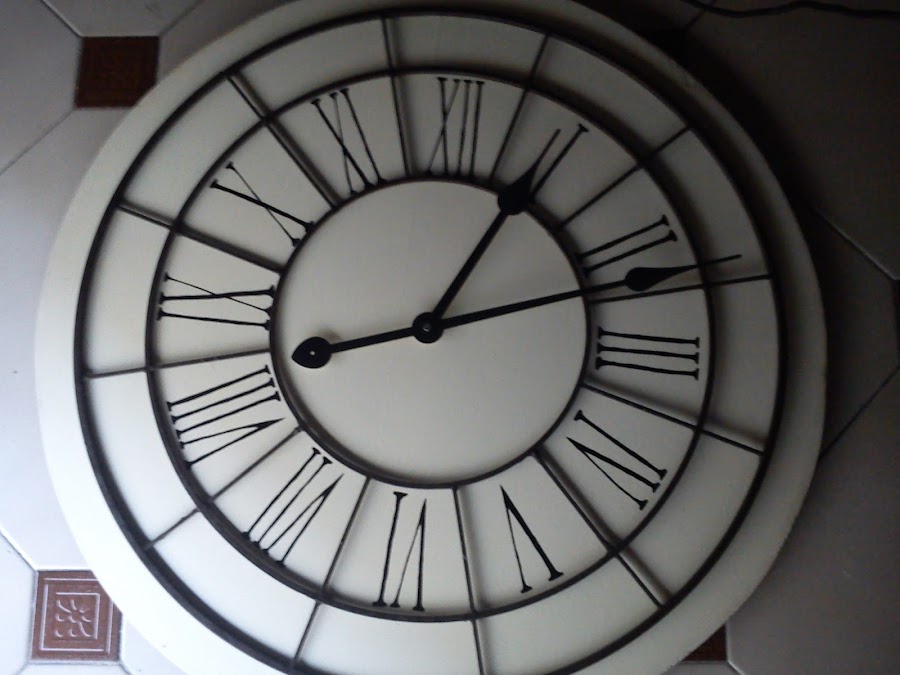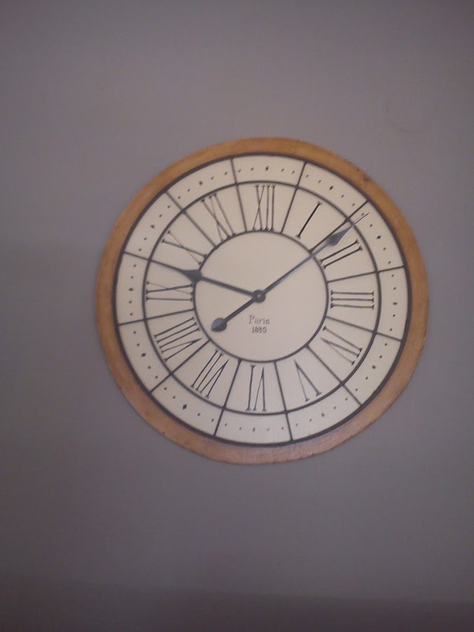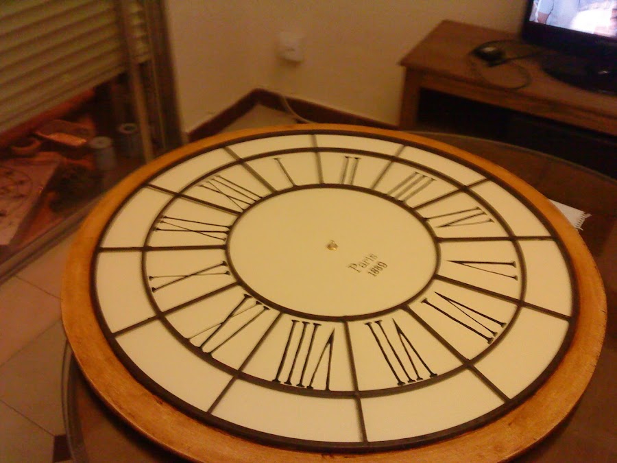 Os dejo una foto del reloj a medio acabar, con todo ya pegado y el mecanismo puesto. Podéis ver también que me animé a pintar a mano los números, quedaron bastante bien, la verdad. Solo es cosa de pulso y mucha mucha paciencia.