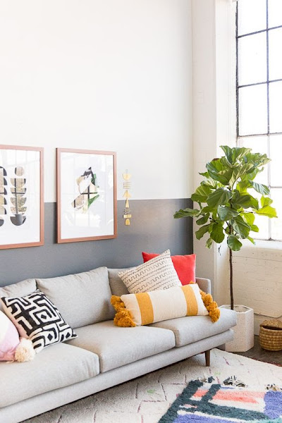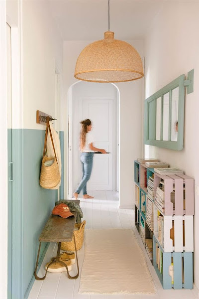 Se acerca la primavera, y con ella las ganas de renovar y pintar la casa . La técnica del half painted , (medio pintado o a medio pintar podría ser su traducción), está de plena actualidad, y es que el efecto que se consigue con esta técnica es cuánto menos sorprendente. La forma de pintar que es tendencia se puede aplicar a objetos cotidianos como a utensilios de madera en la cocina, cestas, en muebles, por ejemplo en las patas de una silla... aunque hoy nos centraremos en las paredes. Normalmente se utiliza un tono más oscuro en la parte inferior de la estancia , reservando para la otra mitad y el techo un color más claro. Aunque no es una norma establecida, también podría realizarse justo al contrario , pintando la parte superior y el techo de un tono más oscuro que la parte inferior de la estancia, con lo que el efecto conseguido sería el contrario, bajar el techo, y sería aconsejable llevarlo a cabo en estancias amplias o desangeladas para ganar calidez y recogimiento.