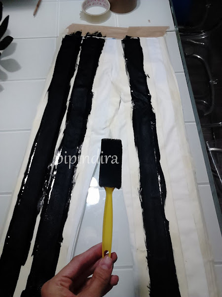 Bueno, una vez hechos los pantalones dibujo líneas. Las negras son de 3,5 cm y las blancas de 2,5 cm. Pongo cinta de carrocero y a pintar. De ésto sí que me acordé de sacar fotos: