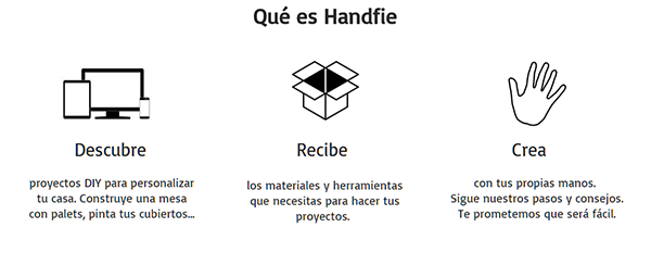 HANDFIE es un portal donde mediante vídeos o en tutoriales paso a paso, vamos a inspiraros y enseñaros a hacer cantidad de cosas: cómo reparar una bici, cómo decorar una fiesta de una manera sencilla... Los vídeos están divididos en cuatro áreas (de ahí los colores :P) CREA, DECORA, REPARA Y TRANSFORMA, para que os sea fácil encontrarlos e ir a las áreas que más os gusten.