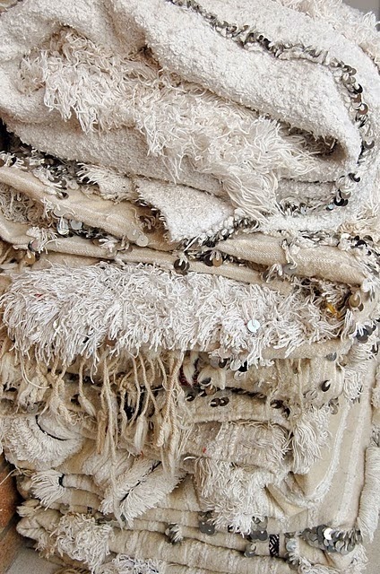 Mantas tradicionales confeccionadas a mano por las mujeres de la tribu Beni Ouarain de origen bereber en Marruecos , son llevadas por la novia el día de su boda a modo de capa , por lo que cada diseño es único y tiene una historia muy especial .