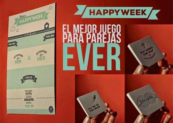 HappyWeek nace de la cabeza y el corazón de Pilar Puig y Tito Español. Comparten sus vidas desde hace 5 años y decidieron en un primer momento crear un Google Calendar para proponer al otro planes diferentes para compartir, y así romper la monotonía y la falta de espontaneidad en la que veían que su relación se empezaba a sumergir. Después surgió la idea de crear un juego para poder compartir esta experiencia con el resto de parejas con ganas de recuperar ese misterio y esa espontaneidad. Explicaron la idea a una psicóloga conyugal, amiga de la pareja, y juntos decidieron crear HappyWeek. Tuve la suerte de conocer a la pareja hace ya algunos años durante un fin de semana en una masía donde celebramos el cumpleaños del hermano de Pilar y de su cuñada. Y ya me parecieron una pareja y unas personas muy especiales.