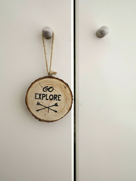 Me encanta colgar cosas de los pomos de las puertas, ya sean de las habitaciones o los armarios, así que la última cosilla que cogí en Primark fue este colgador (aquí) en forma de rodajita de madera, en el que pone "GO EXPLORE" muy acertada la frase . La verdad es que es un colgador que podemos hacer nosotros mismos, pero por dos euros...me gano la pereza de hacerlo jajaja. La veo ideal para la puertas de un dormitorio infantil de estilo nórdico-rústico como os enseñe en este post (aquí)