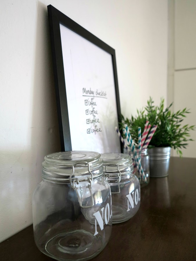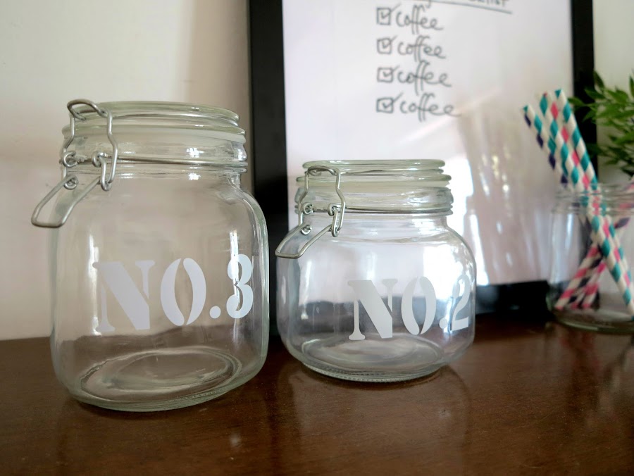Mi idea es colocar tarros para la pasta, porque terminan siempre los paquetes abiertos y desperdigados por el cajón, así que cuando encontré estos dos tarros rebajados en la tienda CASA no me lo pensé. Los había visto en temporada, pero solo el grande valía cinco euros, y no me apetecía gastarme esa cantidad, pero los encontré a un euro y medio y un euro con veinte, por lo que los dos me salieron a menos de la mitad del precio de temporada del grande. Aunque ya no los podréis encontrar quería enseñároslos porque si queréis con una plantilla, una pintura especial para cristal y un pincel de estarcido podréis conseguir unos botes decorados de la misma manera.