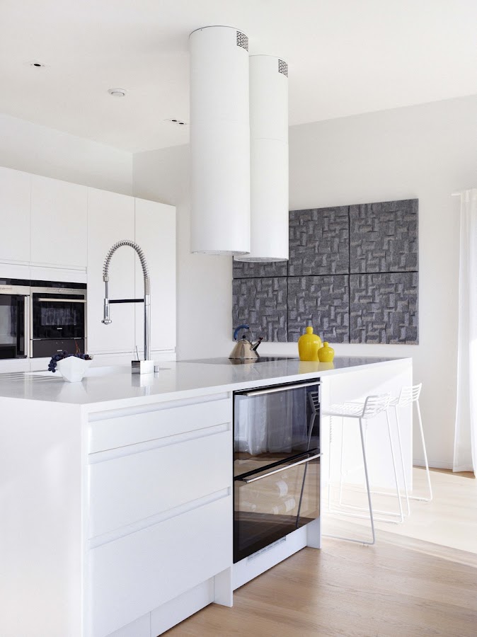 Buenos días, Empezamos la semana con un piso de estilo escandinavo que desprende armonía y serenidad gracias en parte a la elección de la gama cromática. Sobre una base blanca y un bonito suelo de tarima, destacan el gris claro, los toques justo de negro en las lámparas de estilo industrial (y en algunos marcos), y algunas piezas de mobiliario de madera, que también cobra protagonismo en la encime ...