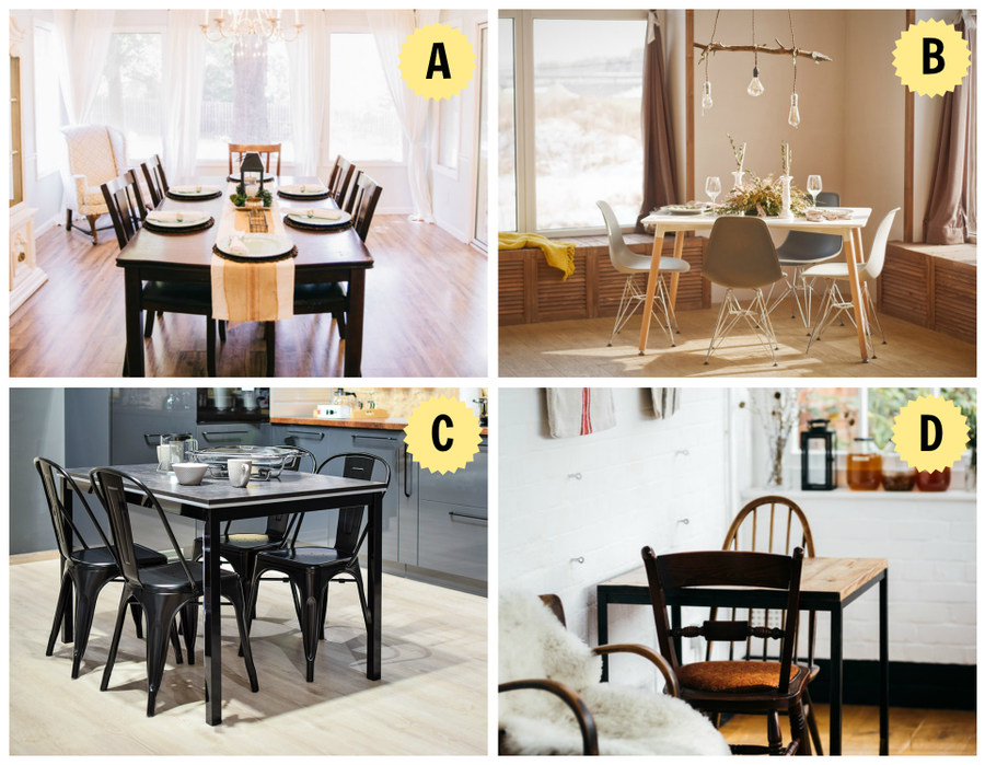 Independientemente de si tu comedor es grande o pequeño, ¿cuál de estos estilos te gusta más?A. Me encanta el diseño clásico con la mesa y las sillas a juego.