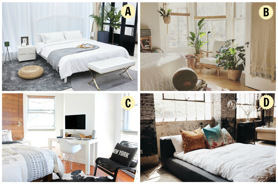 El dormitorio es la estancia más personal e íntima. Aquí tienes cuatros estilos diferentes a los que puedes recurrir a la hora de decorarlo. ¿Con cuál te quedas?A. Dormitorio con textiles y muebles más elegantes.