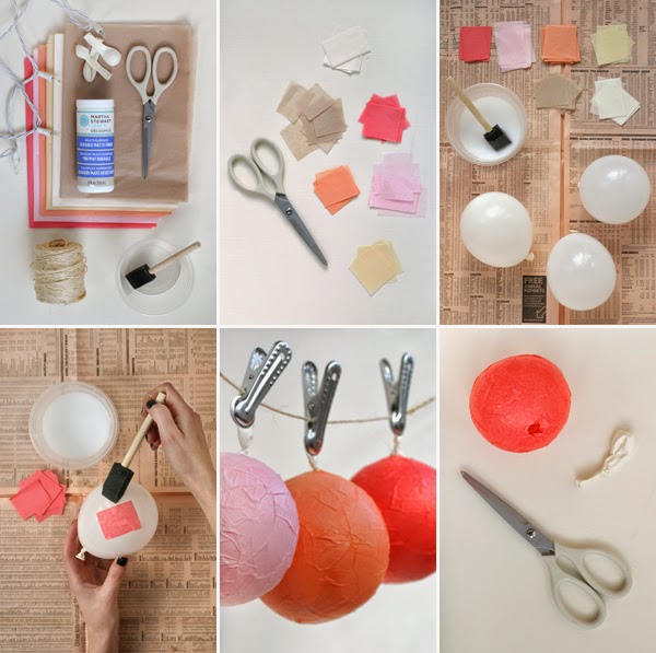 Se trata de hacer nuestra propia guirnalda de farolillos de colores con la técnica del papel maché, se que parece complicado pero una vez te pones es muy sencillo y siguiendo el paso a paso que veréis en las fotos no vais a tener ningún problema.
