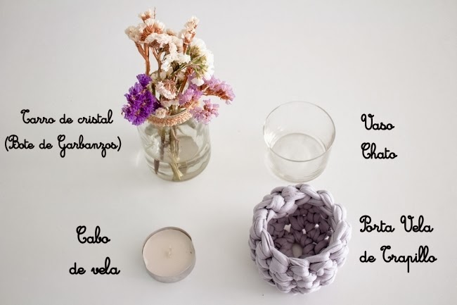 Hola hola, no llegamos al viernes lo veo venir, hoy volvemos a participar en la #Decopedia, nuestras chicas de Petite Candela han propuesto el reto de DECORACIÓN LOW COST, así que como estamos ya rozando la primavera y me he aficionado al trapillo he compuesto un centro de mesa handmade.