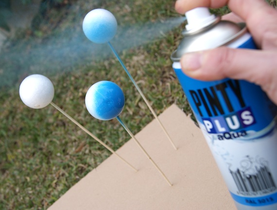 1. pegar las bolas a los palitos