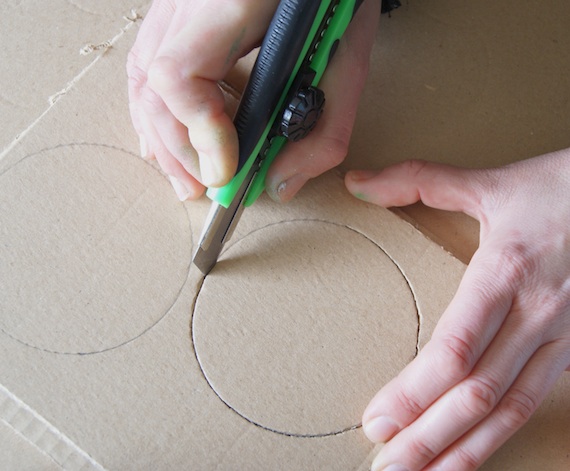 4. mientras se seca la pintura, hacer en el cartón dos círculos de la misma circunferencia de la medida que os guste