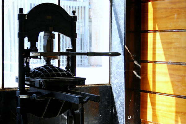 Javier estuvo inicialmente contemplándola mientras yo le iba contando la historia de la prensa, pero la revolución que supuso la imprenta ha quedado obsoleta para él y su generación...