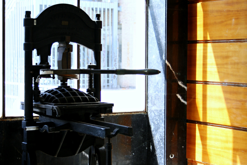 prensa para grabar litografías que mi padre donó a la universidad tras