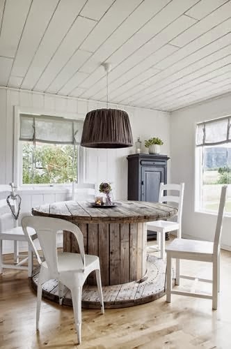 Si hace unas semanas decorábamos la casa utilizando PALLETS reciclándolos a modo de bancos y mesas para el jardín, cabeceros de cama, mesas de centro... hoy utilizamos otro elemento que podemos encontrar en las obras de construcción: las BOBINAS DE CABLE INDUSTRIAL.