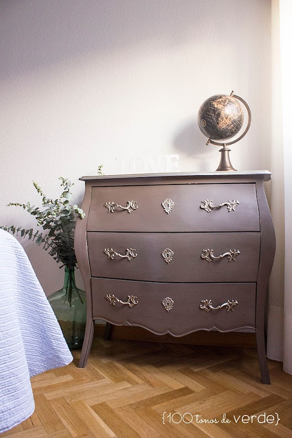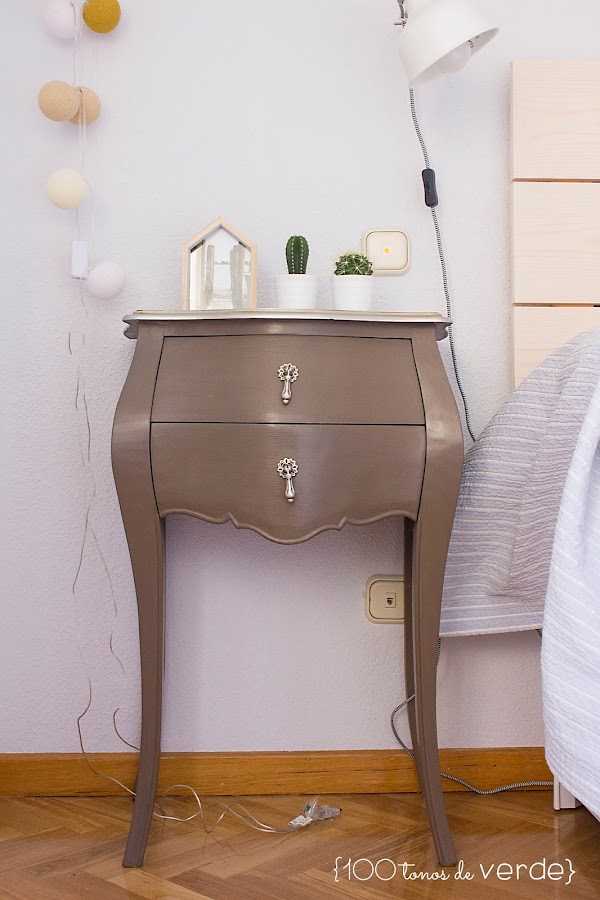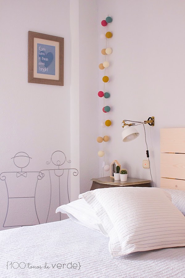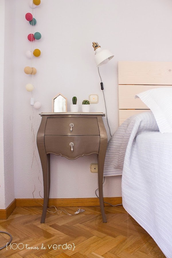 Tengo un par de ideas en la cabeza pero no veo el momento de llevarlas a cabo. Por un lado, para unificar estilos, sin gastar mucho dinero, se me ha ocurrido pintar las mesitas y la cómoda íntegramente de blanco pero, si te soy sincera, me da pavor que queden mal. Por otro lado, ¡tengo que hacer algo con la pared del cabecero!, y lo que más me ronda por la cabeza es pintarla a la mitad.