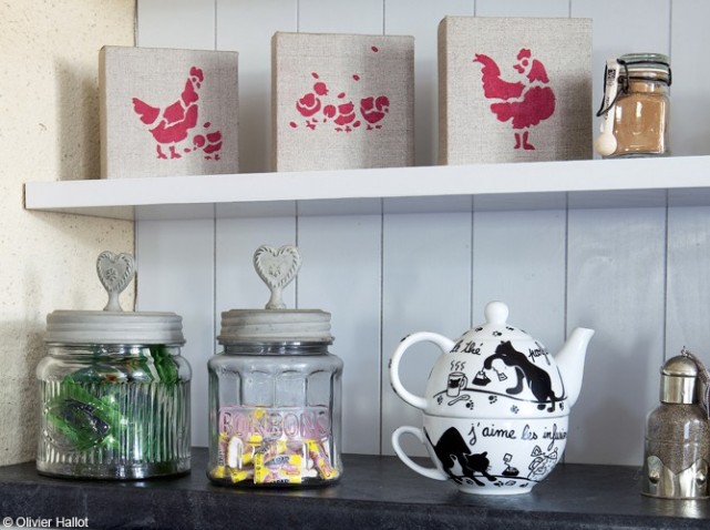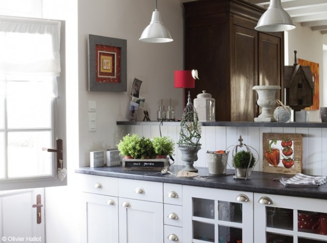 En la cocina, para la familia, la preparación de comidas es sagrada. Se busca un espacio abierto con muebles funcionales esmaltados, cubiertos con un material compuesto de pizarra (imitación) en un estilo chic.