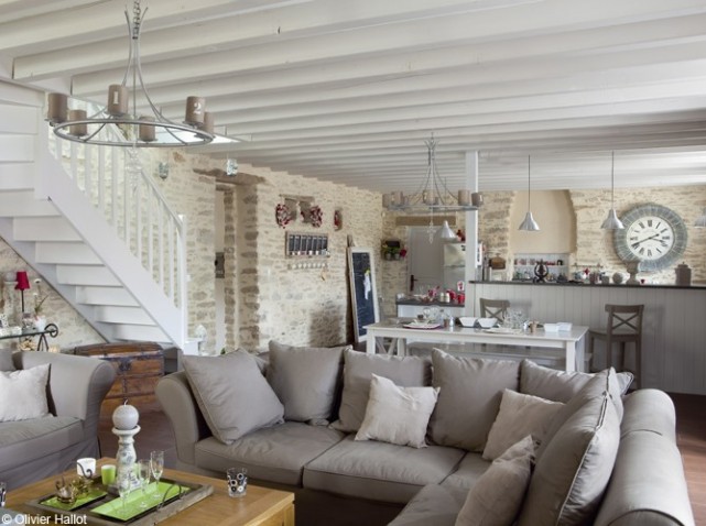 La gama de color de esta preciosa vivenda a caballo entre lo vintage y el shabby chic rústico, varia desde el blanco grisáceo, el crema beige con toques empolvados y efecto de tiza. Un color que respresenta la serenidad lleno de sutiles tonos. La casa está sita cerca de Guérande, una zona preciosa y el estilo decorativo presenta una fuerte alusión a los "pantanos de sal": el mar!.