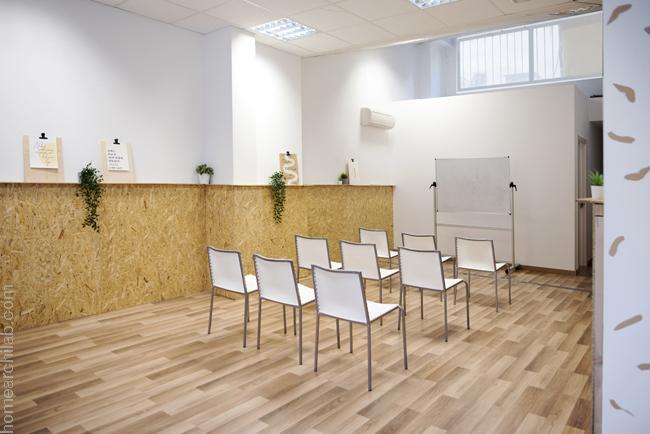 Es posible que incluso te suene, ya que yo misma he alquilado esta sala para algunos talleres hace un tiempo. Fue a raíz de esto que hablando con los dueños me contaron que era una de las salas que más les costaba alquilar por ser menos atractiva visualmente.