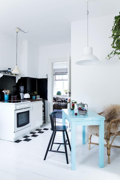 Utilizan un nexo de unión en todo: El frente de cocina o la sillita infantil, se renuevan también con una capa de pintura negra ¡No hay necesidad de ponerlo todo nuevo! También pintan los suelos y aplican contrastes en blanco y negro.
