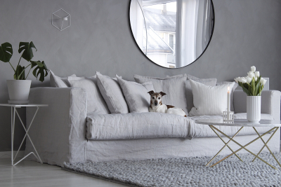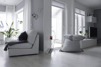 Su vivienda, en los inicios era totalmente blanca, aportando color con los muebles, pero finalmente ha ido aplicando colores neutros en las paredes y sustituyendo las fundas de color del mobiliario por unas en colores grises. Su casa es sencilla y elegante, con muy pocos detalles, interiores brillantes y muy escandinavos con una reducida paleta de colores.