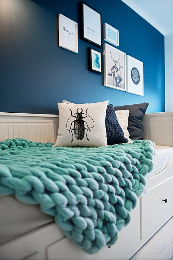 El toque de color sin duda lo pone el dormitorio de invitados donde el turquesa tiene una gran presencia, ¿puede ser mas bonita esa manta XXL? una pieza bonita y única que se lleva todo el protagonismo y nos abre una puerta a la llegada del otoño.