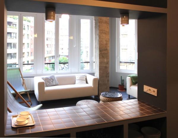 El mirador dividido en tres habitaciones y el largo pasillo distribuidor que comunicaba las tres estancias, y el resto de la casa, hacían que se quedara sin apenas luz (siempre tan escasa, en Euskadi), excepto la que recibía a través de las puertas de las habitaciones, por lo que perdía su máximo potencial.