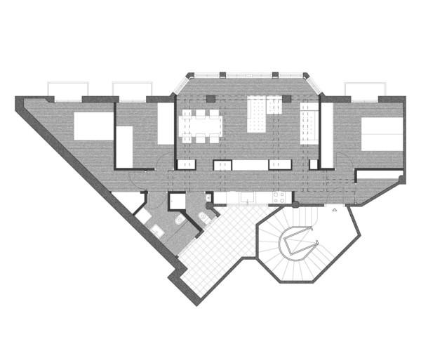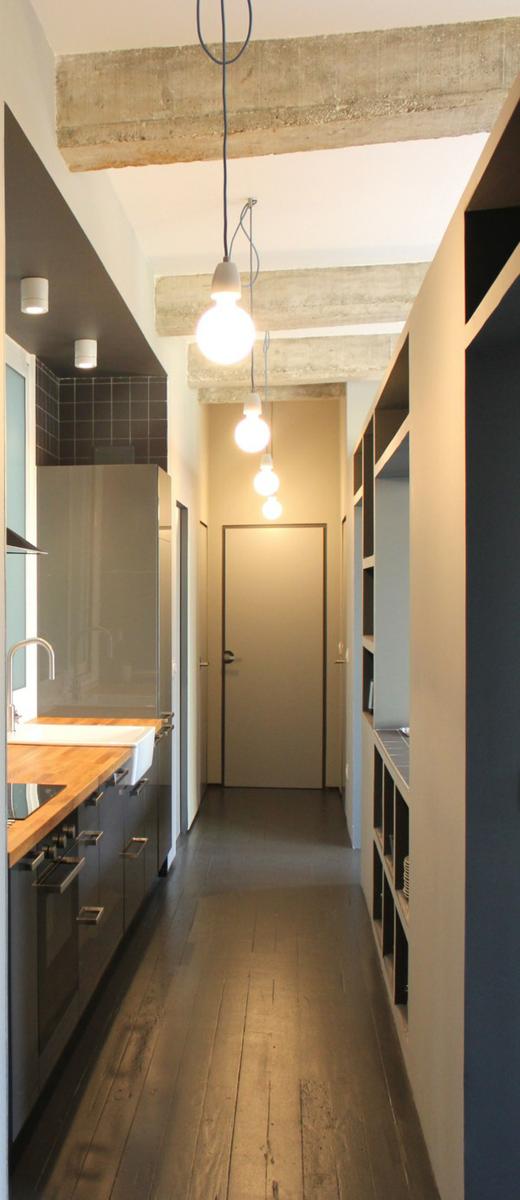 El estudio de diseño ha querido potenciar la estructura del edificio, dejando al descubierto las vigas y pilares de hormigón dando un aire industrial a modo de loft.