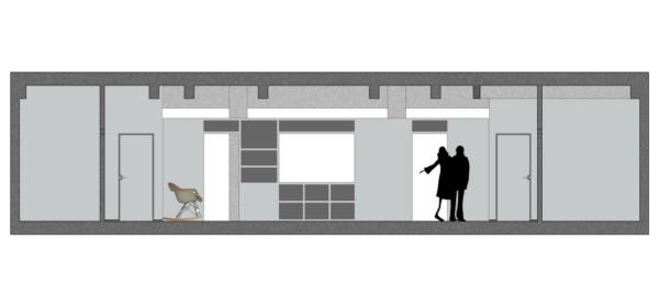 La cocina resultante es mucho más abierta y ha ganado en luminosidad. El hueco de la pared/estantería conecta el mirador visualmente con la ventana de la cocina, lo que le proporciona una doble iluminación y ventilación cruzada. Con la reforma, la distribución de esta vivienda familiar se queda con tres dormitorios ubicados en los extremos de la casa, los tres con balcón a la calle y comunicados por el pasillo distribuidor. Los suelos de madera, son los originales en contraste con la nueva tabiquería ligera. Se ha diseñado un zócalo rehundido que recorre la vivienda, adaptándose como marco para las puertas.