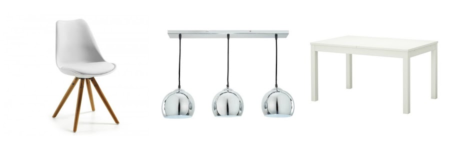 Nosotros fichamos la mesa extensible BJURSTA de Ikea, de esta forma ocupa poco espacio (para 4 comensales) y si viene más gente podemos ampliarla hasta 10 comensales. En ese caso, moveríamos la mesa hacia la entrada, quitando el biombo. De ahí que os dije que para la separación de ambientes queríamos algo que pudiésemos quitar para hacer el espacio diáfano.