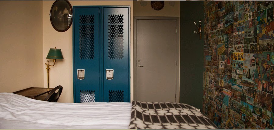 No tuve la suerte de pasar allí la noche, (por relación disponibilidad-precio), pero si que pude tomarme un aperitivo en su cafetería y estar horas intentando que no se me escapara ningún detalle: baúles, mapas, lámparas, papeles pintados, máquinas de escribir, mesas, sillas, una barbería-museo, taquillas, baños con azulejos tipo metro (mientras estás en el baño escuchas la sintonía de una emisora de radio antigua), tantas y tantas cosas que......no podía abarcarlo todo.....el Kex hostel era PERFECTO!