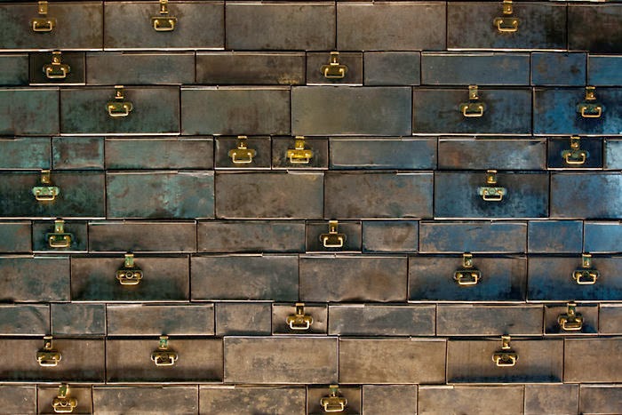 Con un techo decorado a base de cajas fuertes originales, que aluden al antiguo banco que ocupaba el edificio.