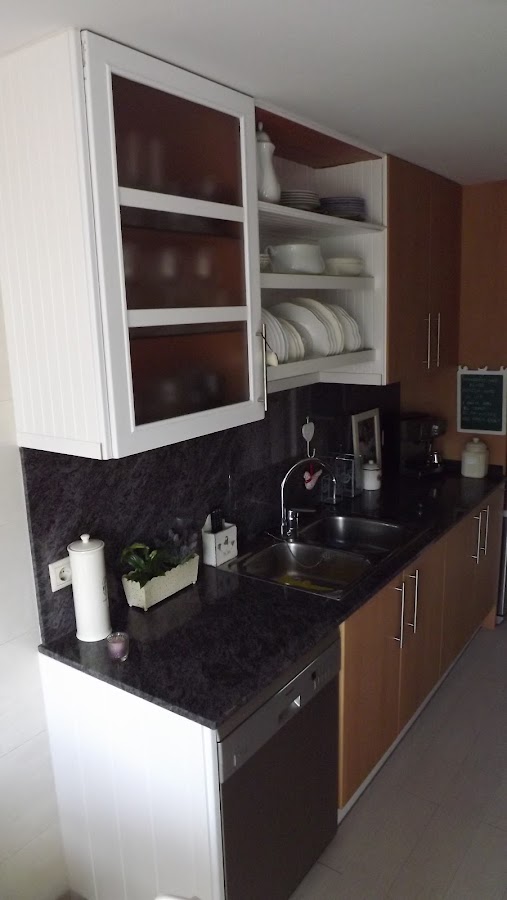 Mi cocina sigue su reforma,lenta pero sigue...Los cambios empiezan a notarse aunque todavía hay una mezcla de la antigua de madera y la nueva en blanco.Menos mal que llega el fin de semana y podremos dedicarle más tiempo.El platero está ya casi terminado y me encanta, tiene ese aire de las cocinas de antaño en el que puedes exhivir tu mejor vajilla,esa que la mayoría guardamos dentro de los armarios.Así que esta tarde iremos a Ikea a comprar los tiradores y dos ángulos lacados en blanco que necesitamos...Feliz inicio de fin de semana para todos.
