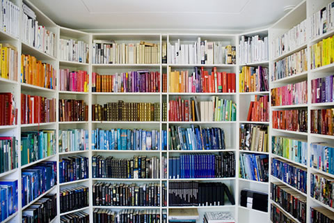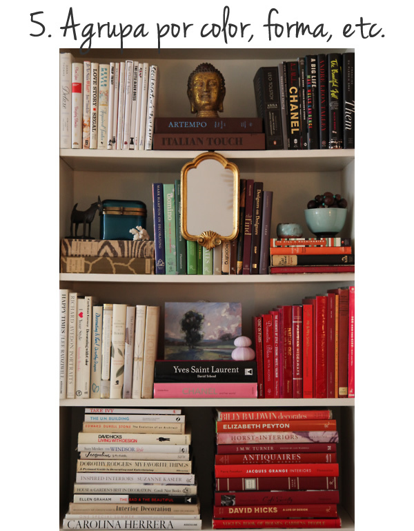 · Por color: es una de las ideas más bonitas y originales a la hora de no sólo ordenar sino también decorar con la organización que dispongamos para nuestros libros.