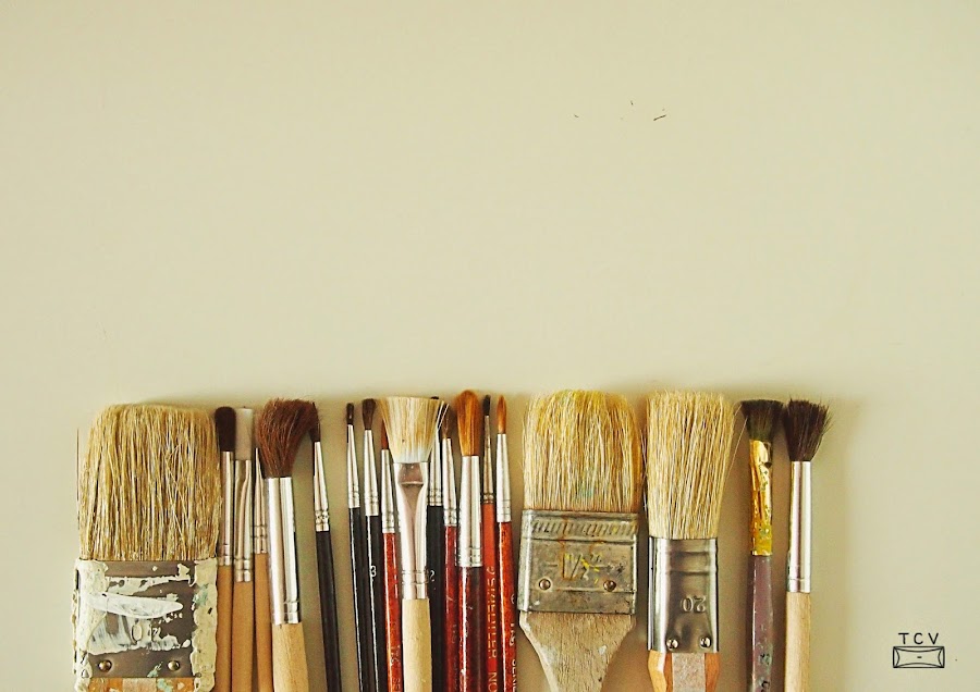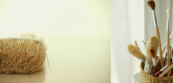 Últimamente mis días corren un poco entre el teclado del ordenador y la mesa del comedor recién reconvertida en mesa de trabajo llena de pinceles y pinturas. Pinceles, esos objetos que se han convertido en una extensión de mi mano. Pintar con un poco de música y soledad hasta se puede transformar en algo relajante. Para mis fotos me he decidido por el orden y no por el desastre.