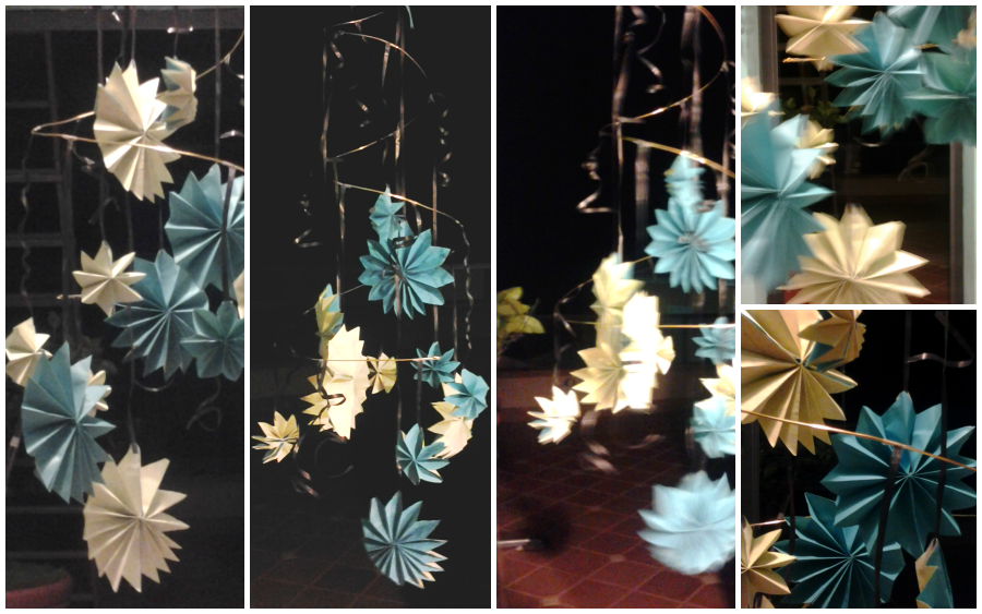 Luego ya viene el montaje, yo las colgué con cinta de envolver regalos, en negro, y luego puse un par de tiras de cintas sueltas de manera estratégica.