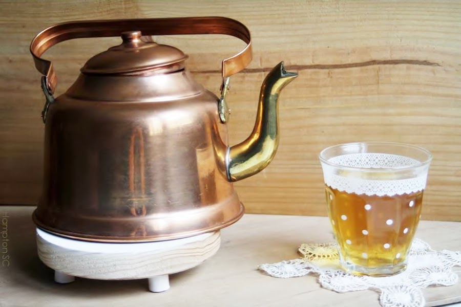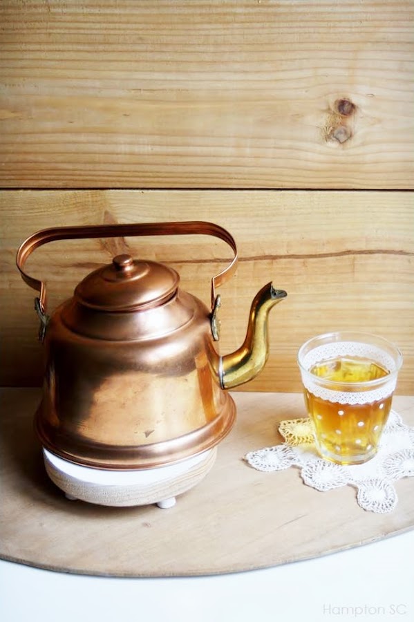 Momento té de evocación rústica con tetera de cobre,