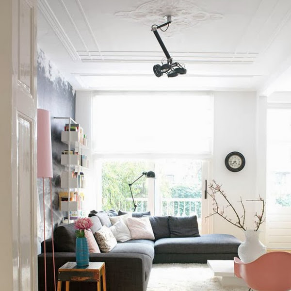 Lámpara de corcho de gran formato , que imprime mucha personalidad a la estancia , junto con las sillas butterfly y esa mesa de centro tan "diferente"....... hacen de esta casa en Californi ...