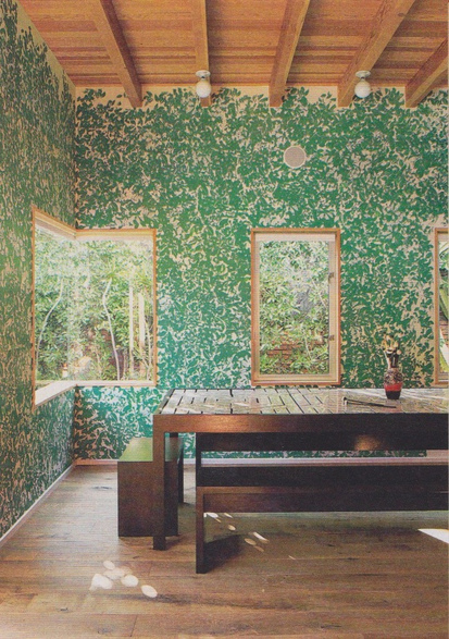 Lámpara de corcho de gran formato , que imprime mucha personalidad a la estancia , junto con las sillas butterfly y esa mesa de centro tan "diferente"....... hacen de esta casa en Californi ...