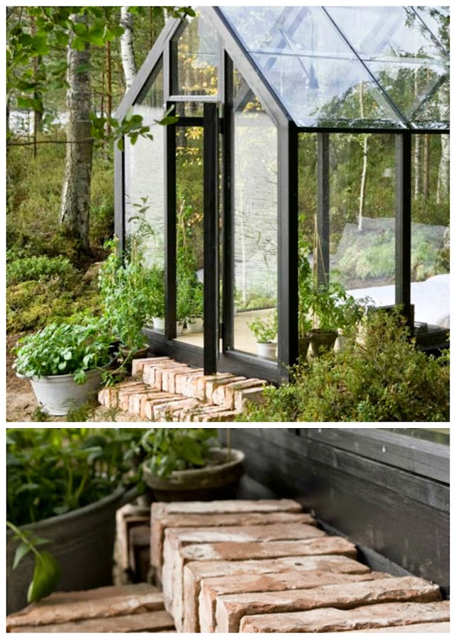 El tejado a dos aguas típico de la zona debido a las habituales condiciones meteorológicas, y el sistema de abridores automático que permite regular la temperatura del interior, consiguen que, además de bonito, el invernadero sea "habitable". La sencilla decoración, con dos pequeñas lámparas metálicas, una cama sobre el suelo vestida en color blanco, plantas, y un tocadiscos de aire vintage hacen el resto.