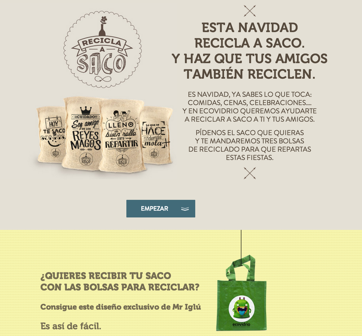 Para aquellos que no reciclan porque no tienen espacio, o porque tener muchos cubos de basura les parece feo, tengo una solución. Ecovidrio ha lanzado estos sacos tan chulos con mensaje para que guardemos todas nuestras botellas de vidrio de forma cuki.