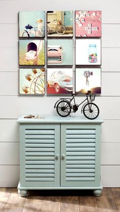 hoy nos dedicamos a renovar una pared, haciendo una composicion con cuadros, laminas, fotos, portarretratos..debemos elegir un tema, los colores y animarnos...podemos hacerlos con tapas de cajas ...