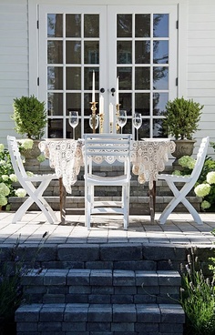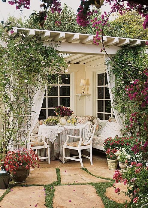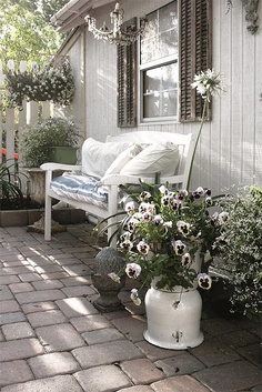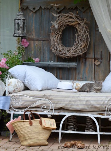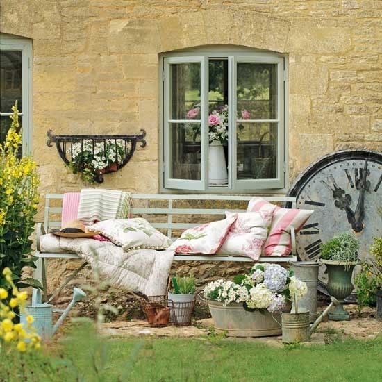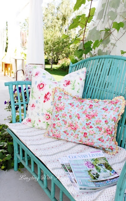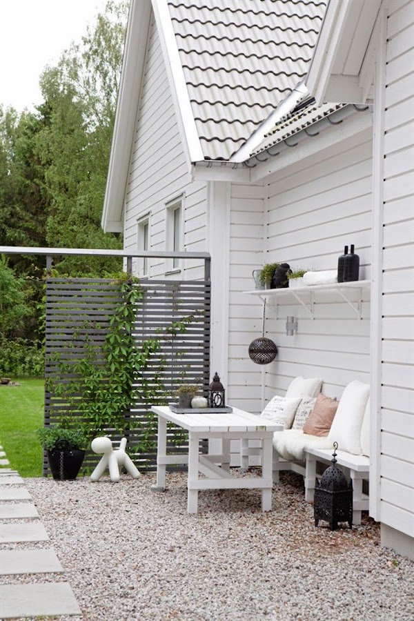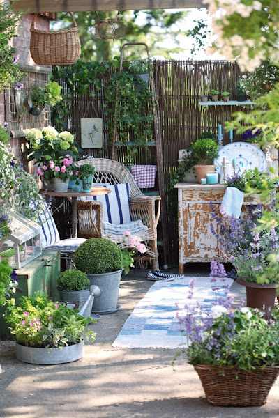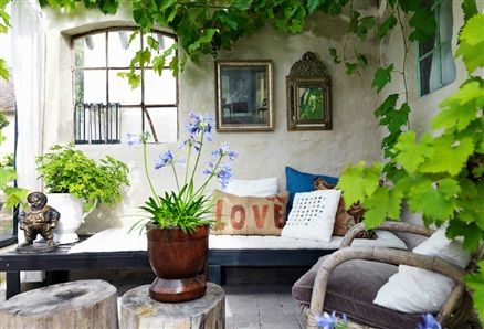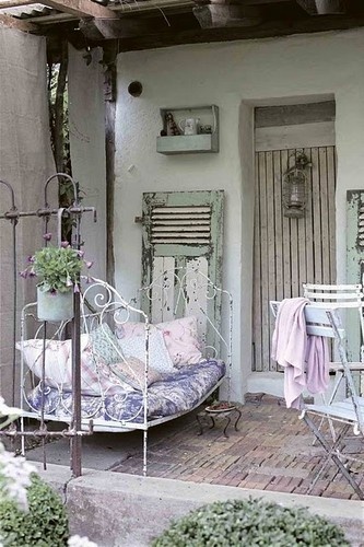 hoy recorremos espacios en el exterior donde disfrutar el aire libre, esperando la primavera o despidiendo el verano..según donde vivas...lo importante es crear ese espacio donde relajarnos y disfrutar una cálida brisa...juntemos un sillón una silla, almohadones, una mesa o una maquina de coser en desuso y a crear!!!